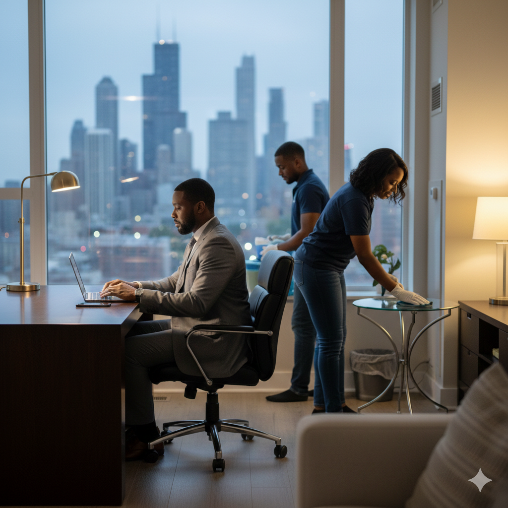 Reliable, detail-driven cleaning for homes and professional spaces across Chicago.